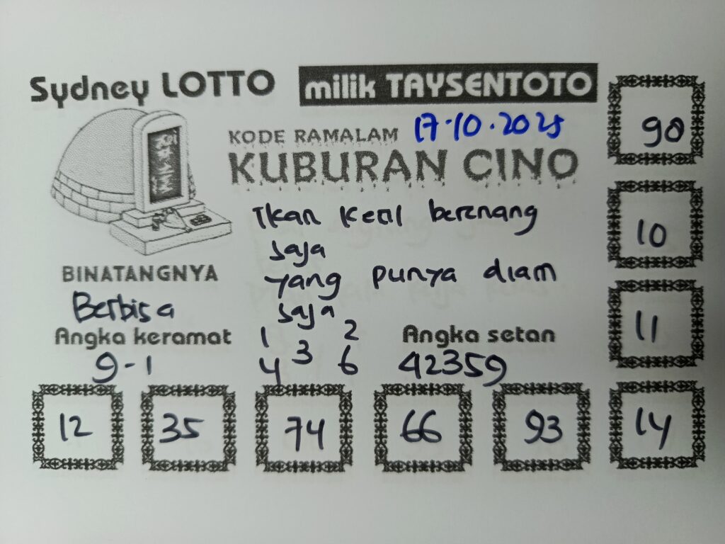 Syair Kuburan Cino Sydney Hari ini Jumat, 17 Oktober 2025