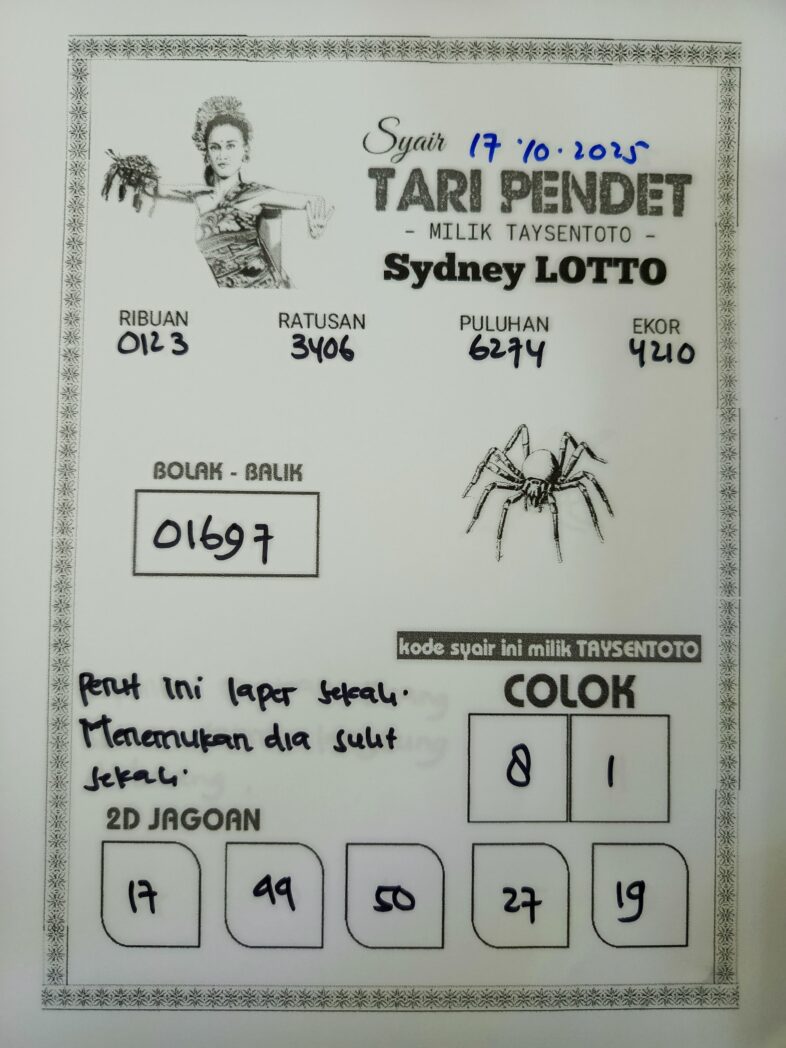 Syair Tari Pendet Sydney Hari ini Jumat, 17 Oktober 2025