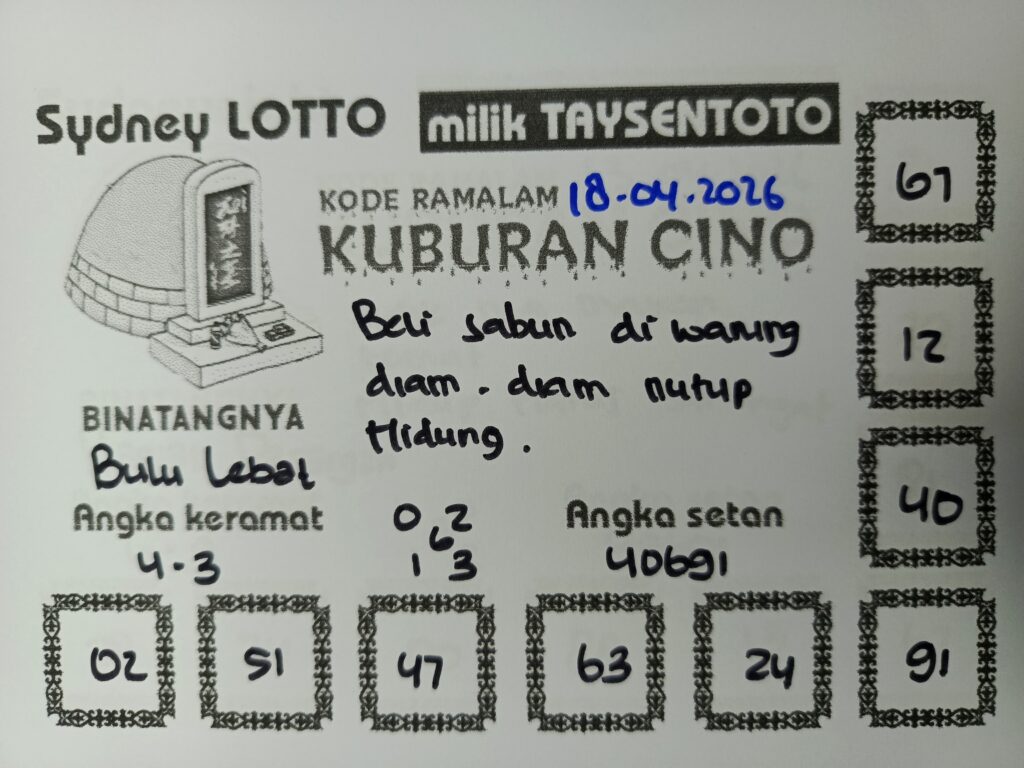 Syair Kuburan Cino Sydney Hari ini Sabtu, 18 April 2026
