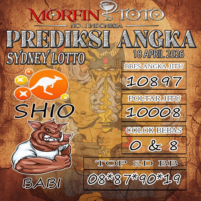 Syair lipan sakti SYDNEY LOTTO Hari ini jumat 18 April 2026