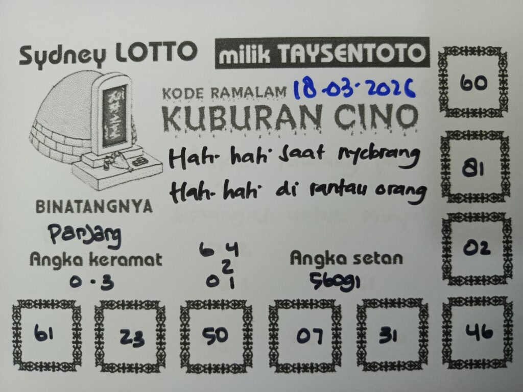Syair Kuburan Cino Sydney Hari ini Rabu, 18 Maret 2026