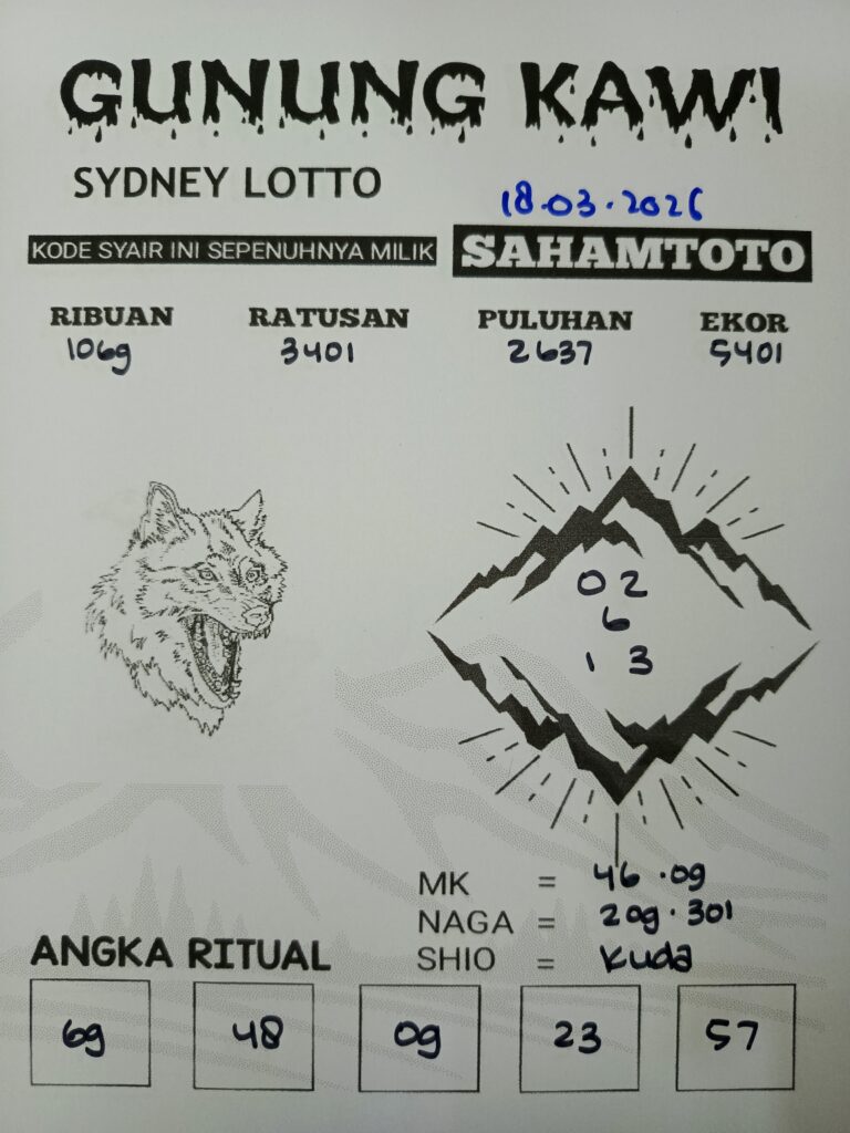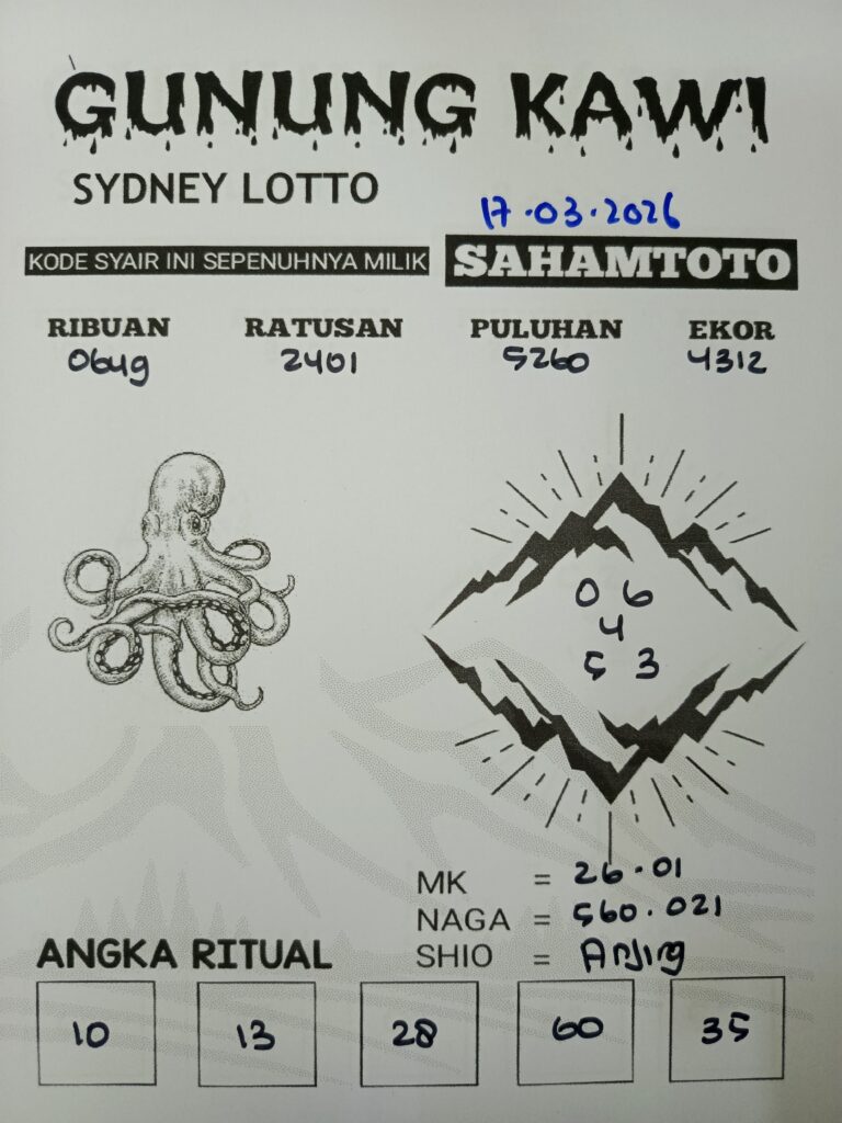 Syair Gunung Kawi Sydney Lotto Hari ini Selasa 17 Maret 2026