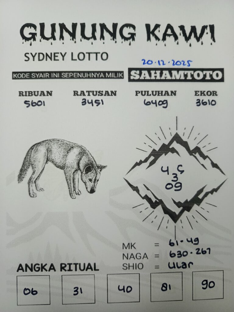 Syair Gunung Kawi Sydney Lotto Hari ini 20Desember 2025