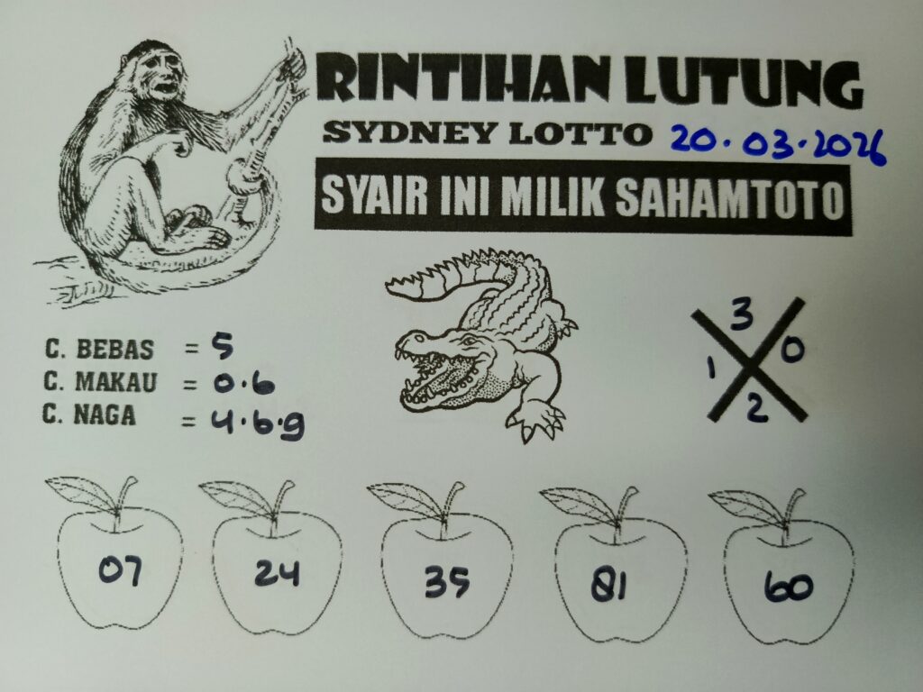 Syair Rintihan Lutung Sydney Lotto Hari ini Jumat 20 Maret 2026