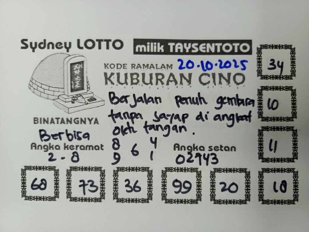 Syair Kuburan Cino Sydney Hari ini Senin, 20 Oktober 2025