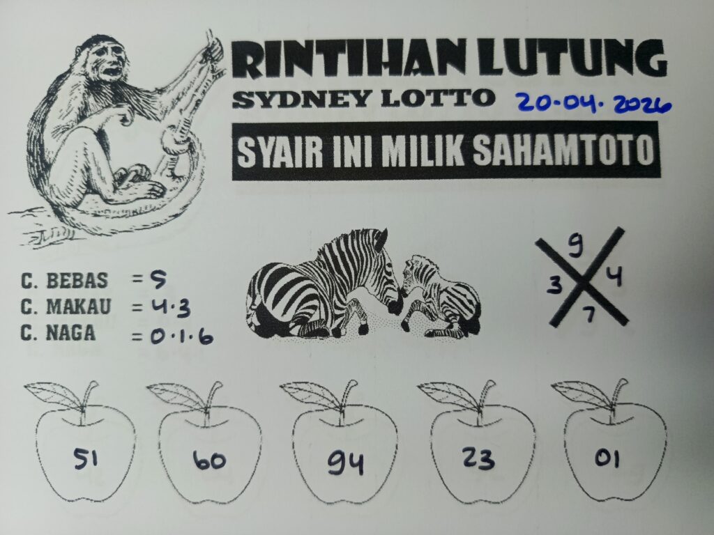 Syair Rintihan Lutung SYDNEY LOTTO Hari ini SENIN 20 April 2026