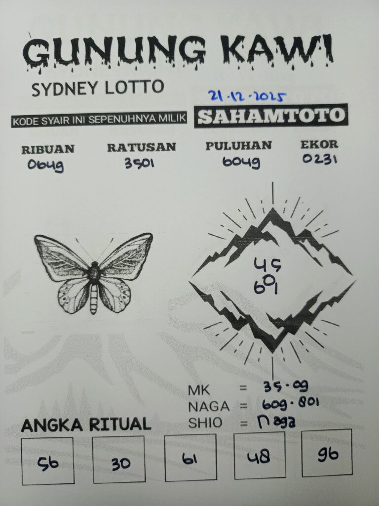 Syair Gunung Kawi Sydney Lotto Hari ini 21 Desember 2025