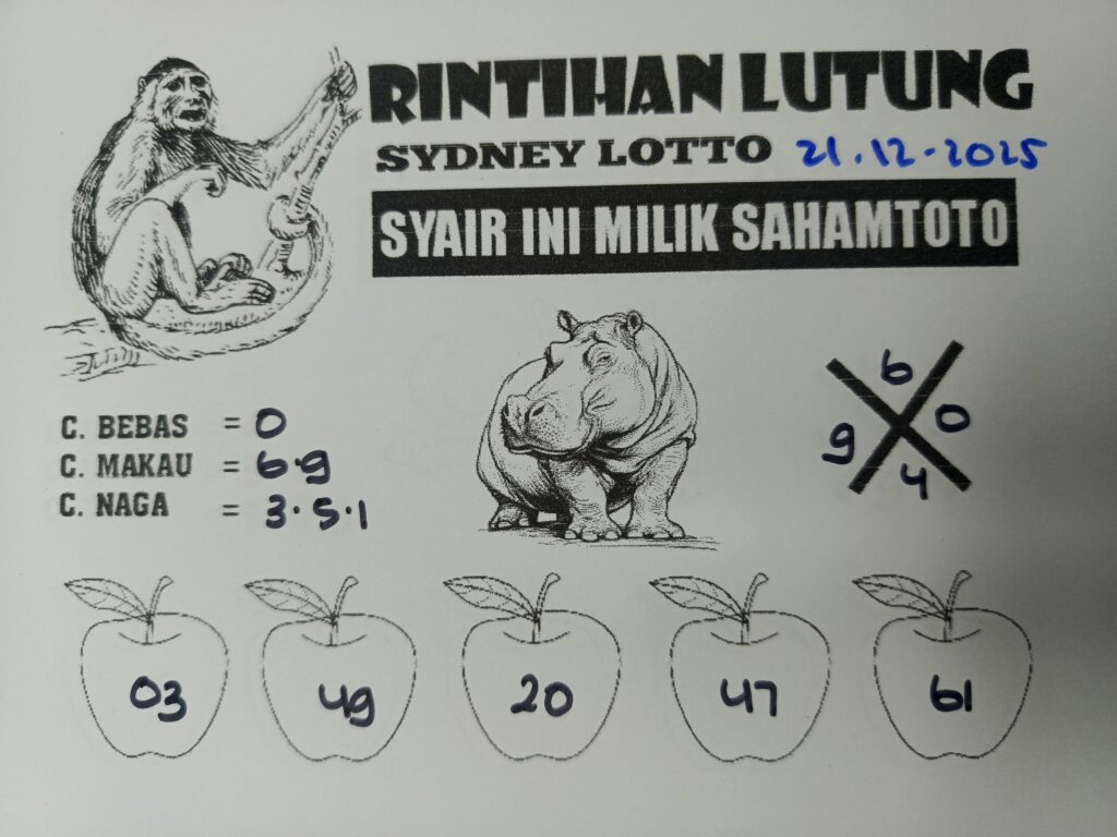 Syair Rintihan Lutung Sydney Lotto Lotto Hari ini 21 Desember 2025