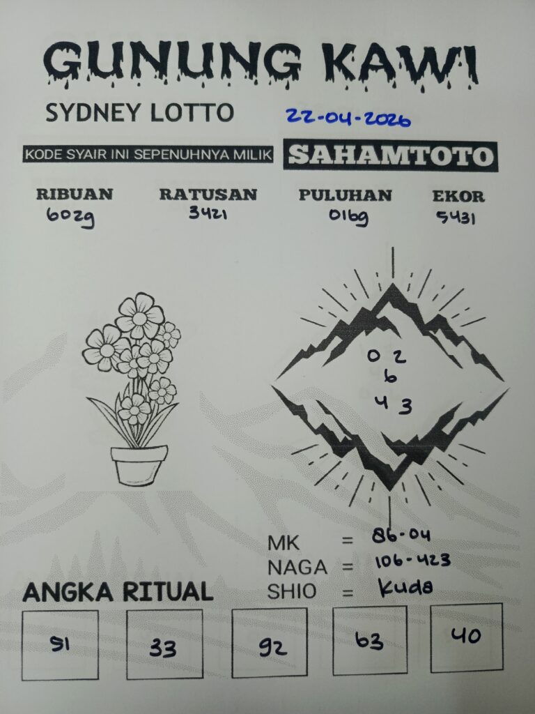 Syair Gunung Kawi SYDNEY LOTTO Hari ini SENIN 20 April 2026