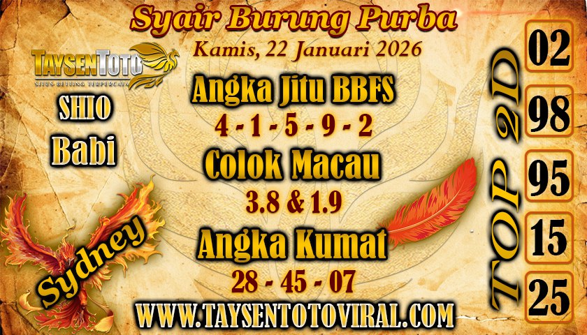 Syair Burung Purba Sydney Hari ini Kamis, 22 Januari 2026