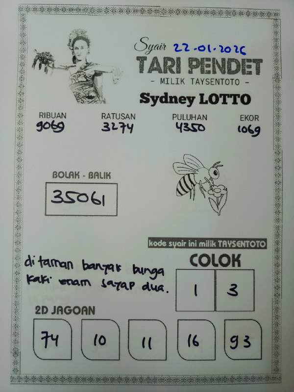 Syair Tari Pendet Sydney Hari ini Kamis, 22 Januari 2026