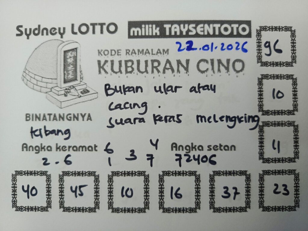 Syair Kuburan Cino Sydney Hari ini Kamis, 22 Januari 2026