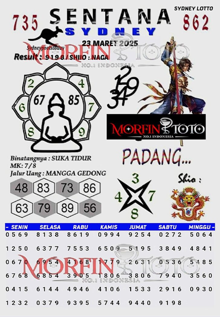 Syair Prediksi Angka Sydney Hari ini Minggu, 23 Maret 2025