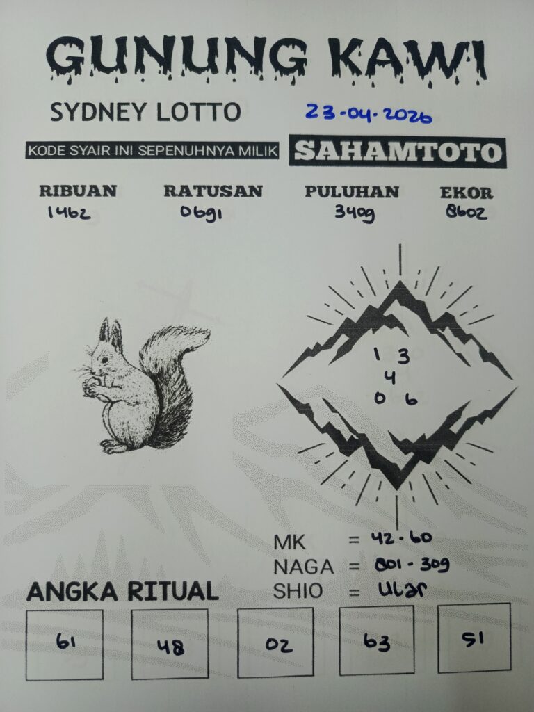 Syair Gunung Kawi SYDNEY LOTTO Hari ini kamis 23 April 2026