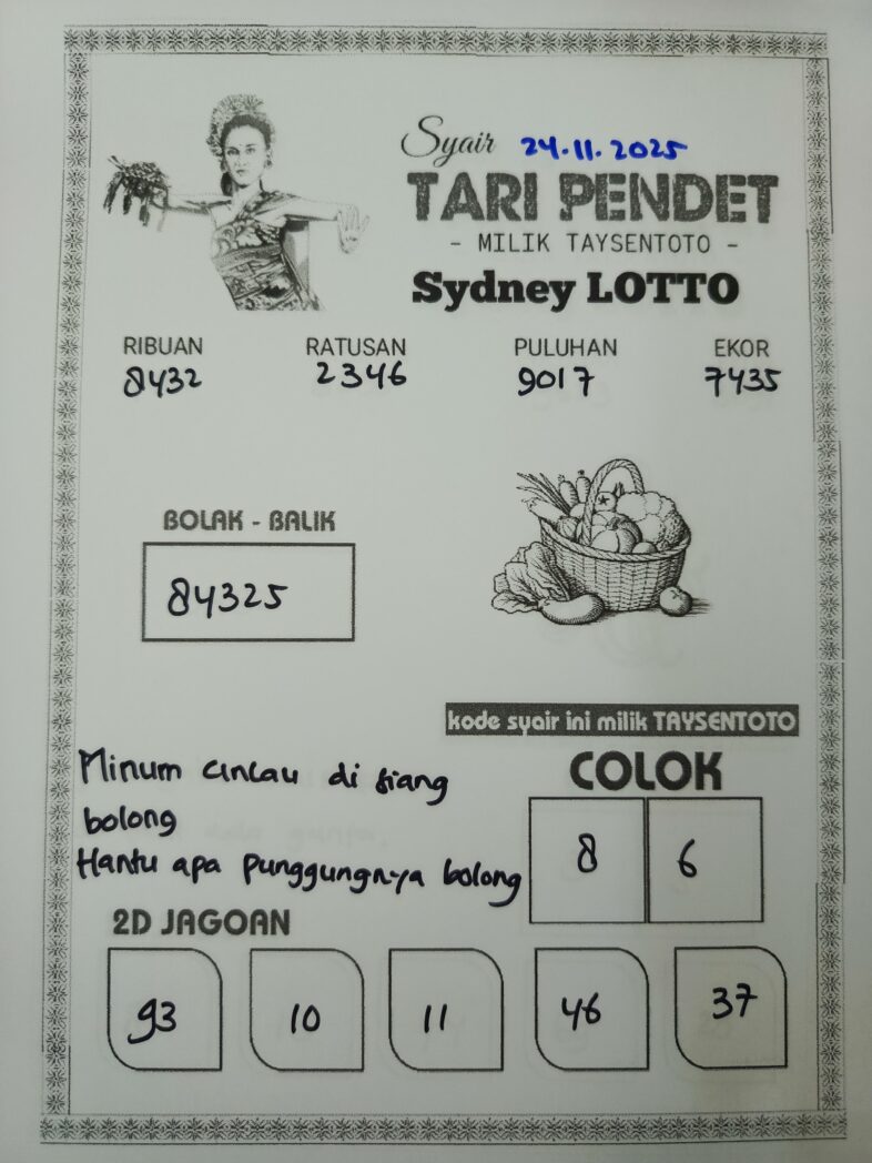 Syair Tari Pendet Sydney Hari ini Senin, 24 November 2025