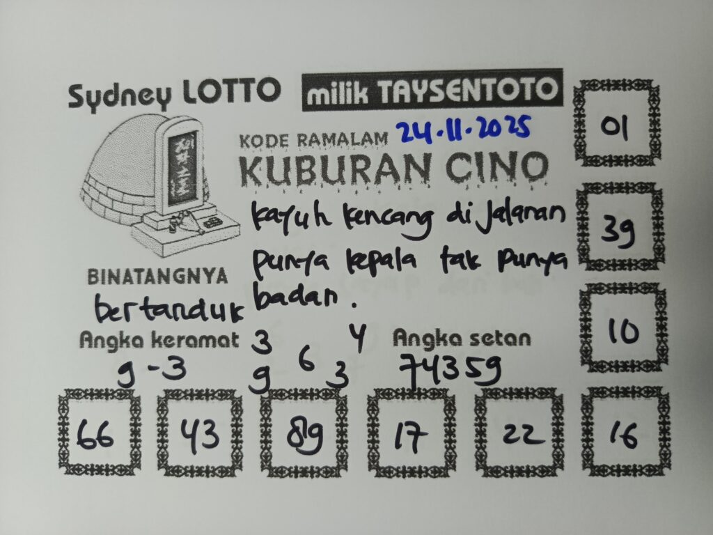 Syair Kuburan Cino Sydney Hari ini Senin, 24 November 2025