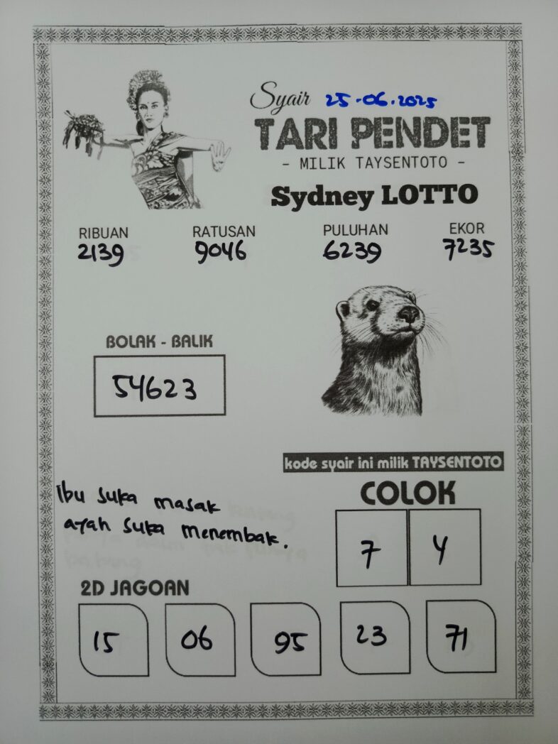 Syair Tari Pendet Sydney Hari ini Rabu, 25 Juni 2025