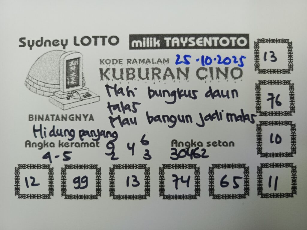 Syair Kuburan Cino Sydney Hari ini Sabtu, 25 Oktober 2025