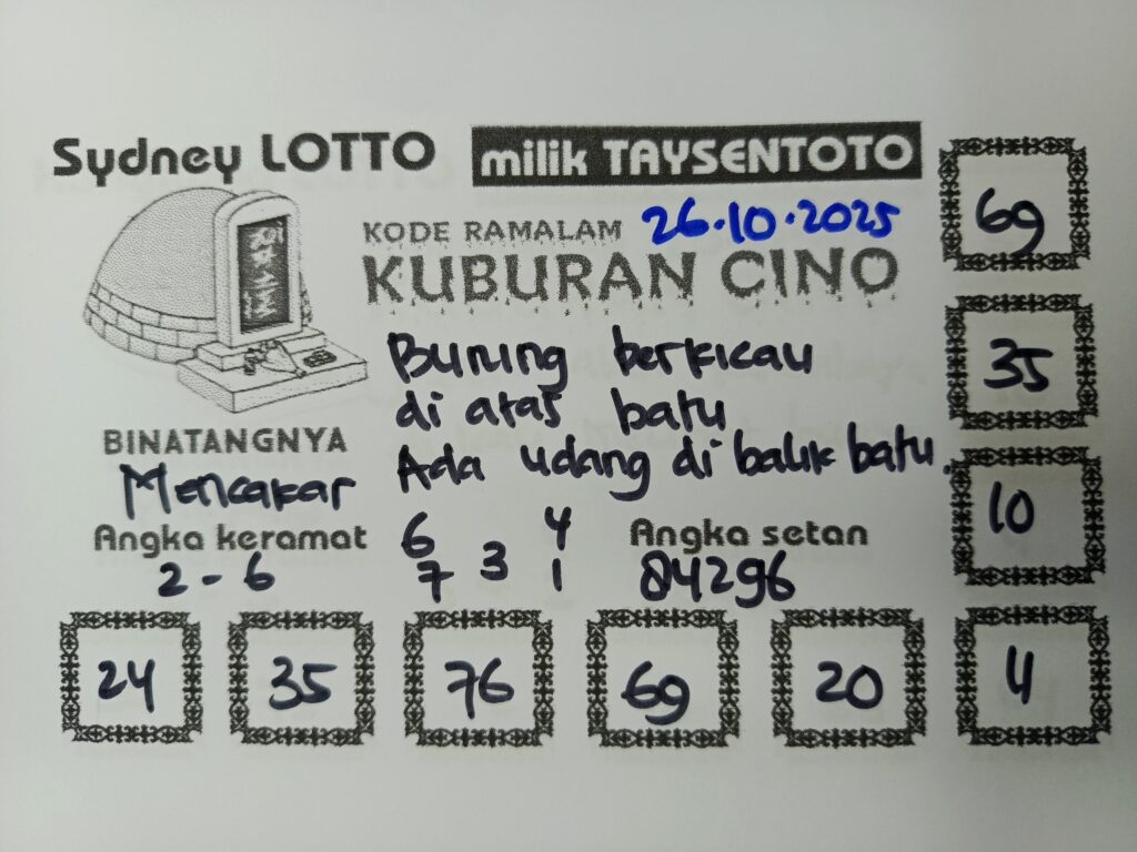 Syair Kuburan Cino Sydney Hari ini Minggu, 26 Oktober 2025