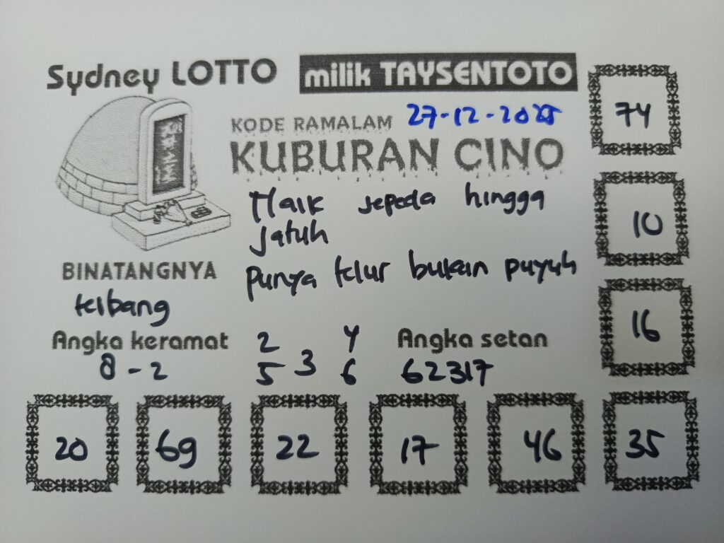 Syair Kuburan Cino Sydney Hari ini Sabtu, 27 Desember 2025