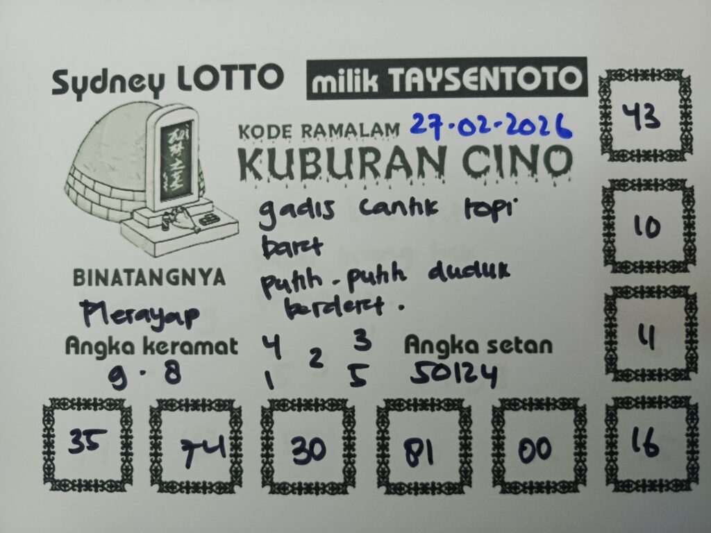 Syair Kuburan Cino Sydney Hari ini Jumat, 27 Februari 2026