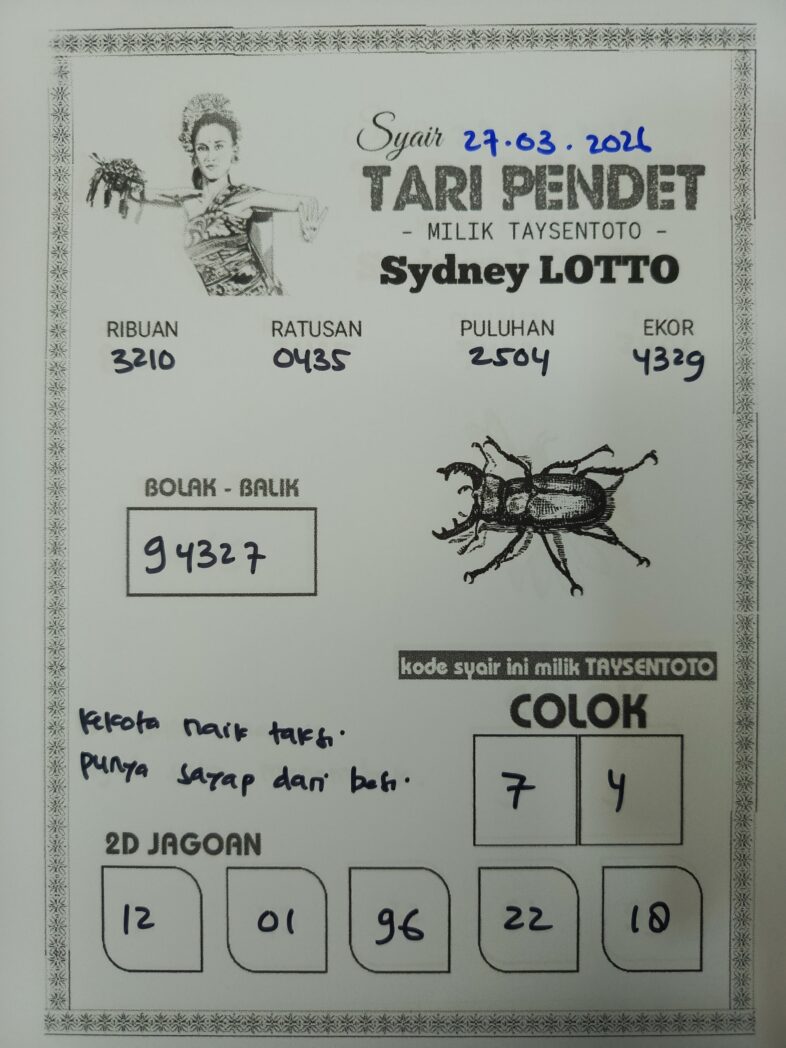 Syair Tari Pendet Sydney Hari ini Jumat, 27 Februari 2026