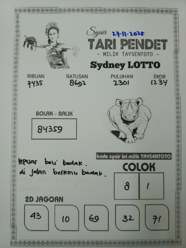 Syair Tari Pendet Sydney Hari ini Kamis, 27 November 2025