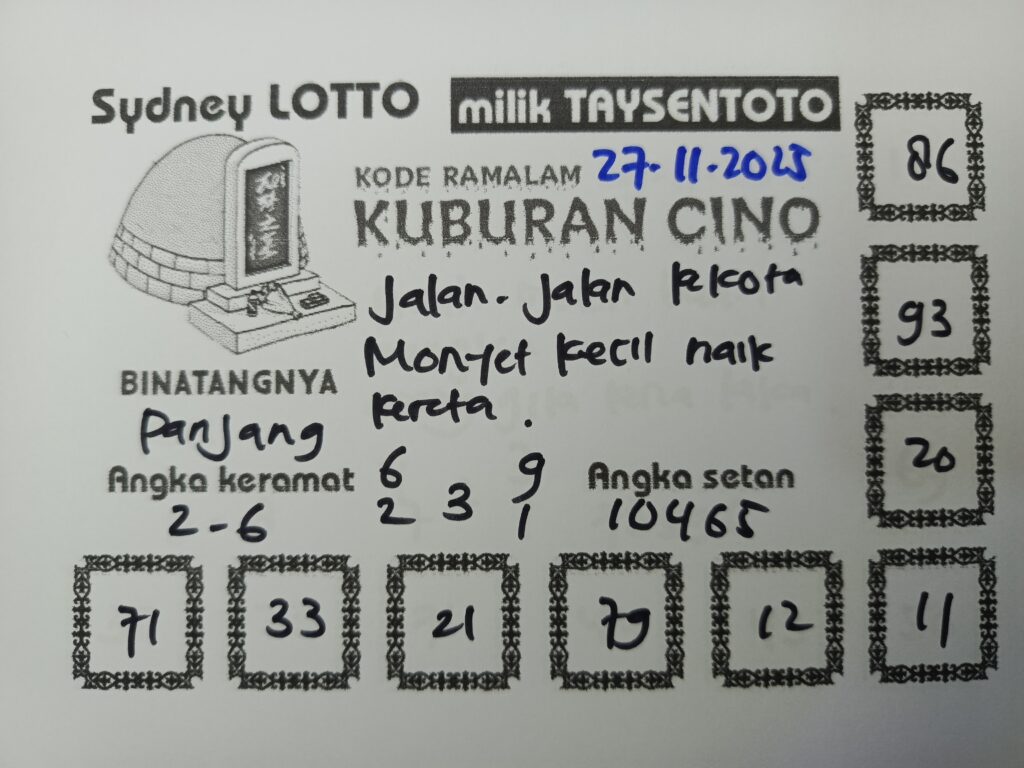 Syair Kuburan Cino Sydney Hari ini Kamis, 27 November 2025