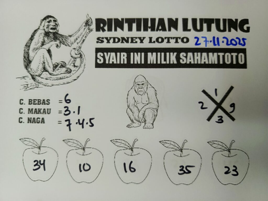 Syair Rintihan Lutung SYDNEY LOTTO Hari ini Kamis 27 november 2025