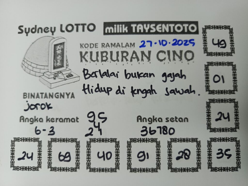 Syair Kuburan Cino Sydney Hari ini Senin, 27 Oktober 2025