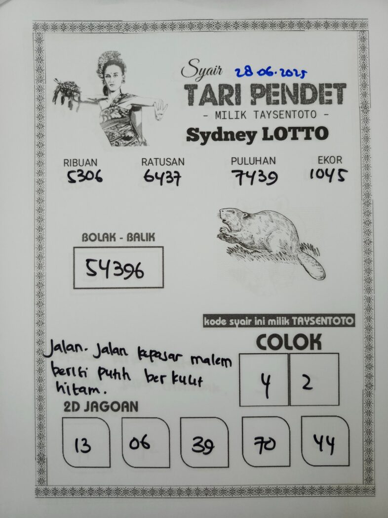 Syair Tari Pendet Sydney Hari ini Sabtu, 28 Juni 2025