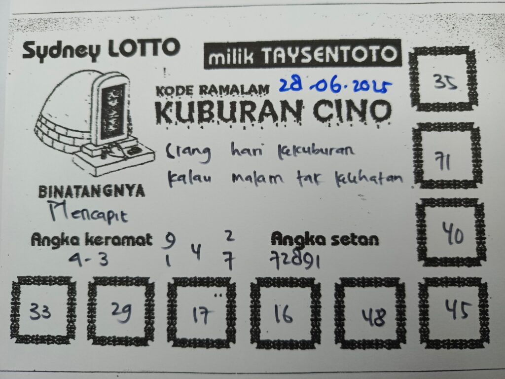 Syair Kuburan Cino Sydney Hari ini Sabtu, 28 Juni 2025