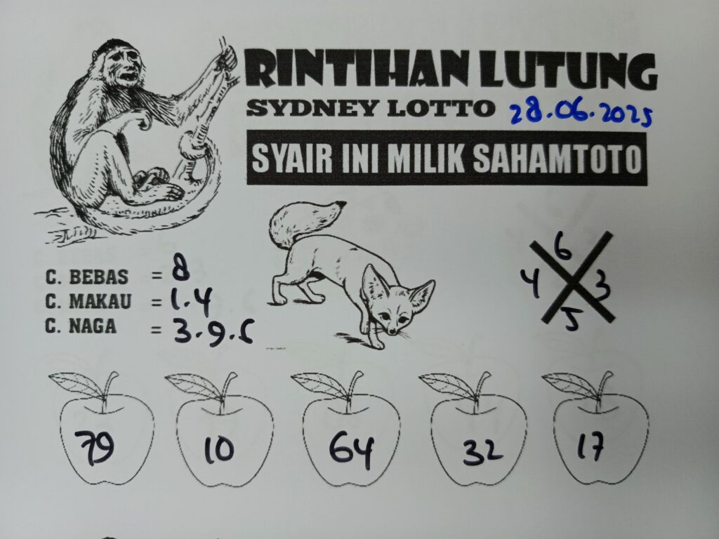 Syair Rintihan Lutung Sydney lotto Hari ini Sabtu 28 Juni 2025