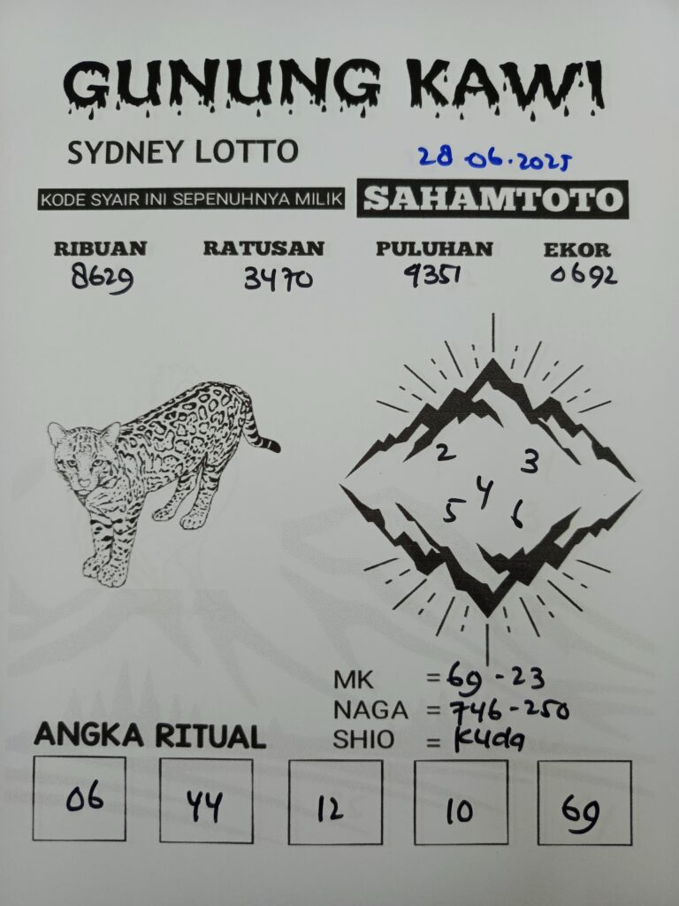 Syair Gunung Kawi Sydney lotto Hari ini Sabtu 28 Juni 2025