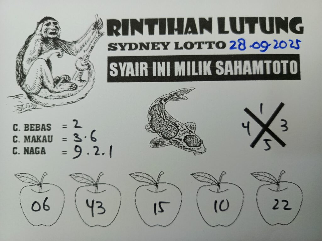 Syair Rintihan Lutung Sydney Lotto Hari ini Minggu 28 September 2025