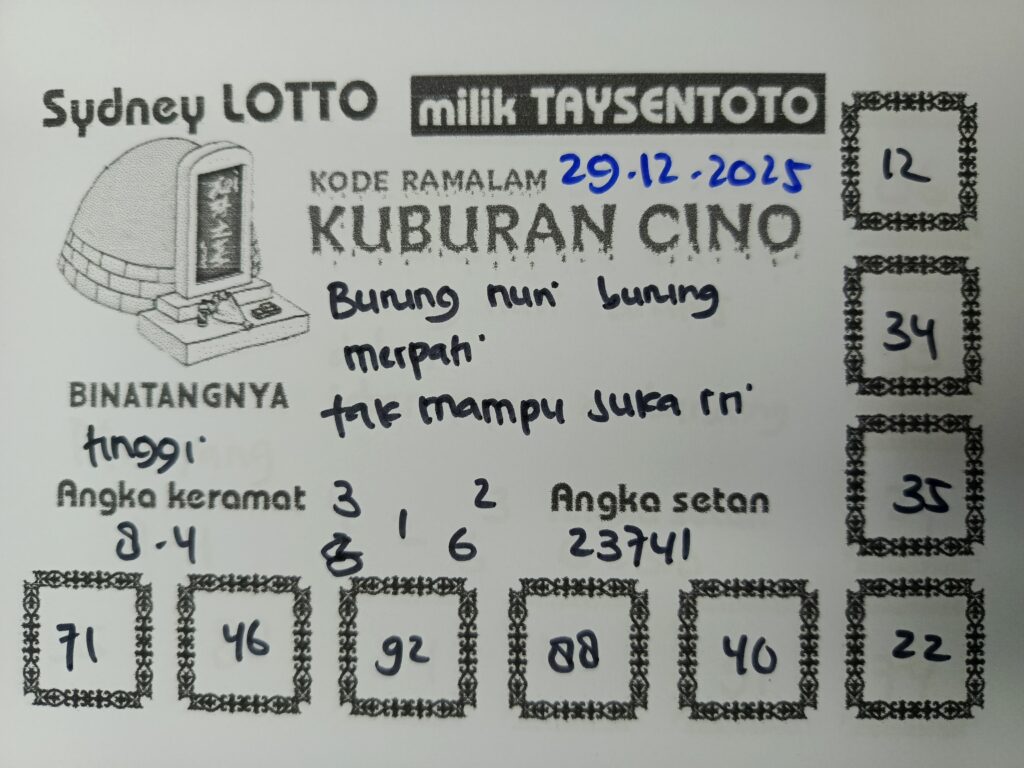 Syair Kuburan Cino Sydney Hari ini Senin, 29 Desember 2025
