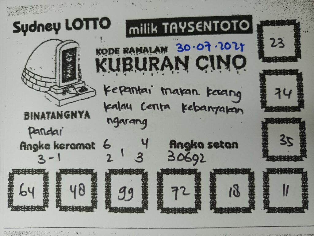 Syair Kuburan Cino Sydney Hari ini Rabu, 30 Juli 2025