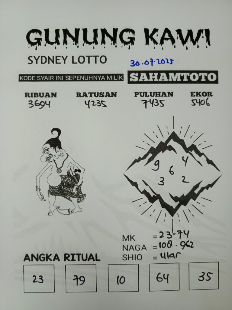 Syair Gunung Kawi SYDNEY LOTTO Hari ini rabu , 30 Juli 2025