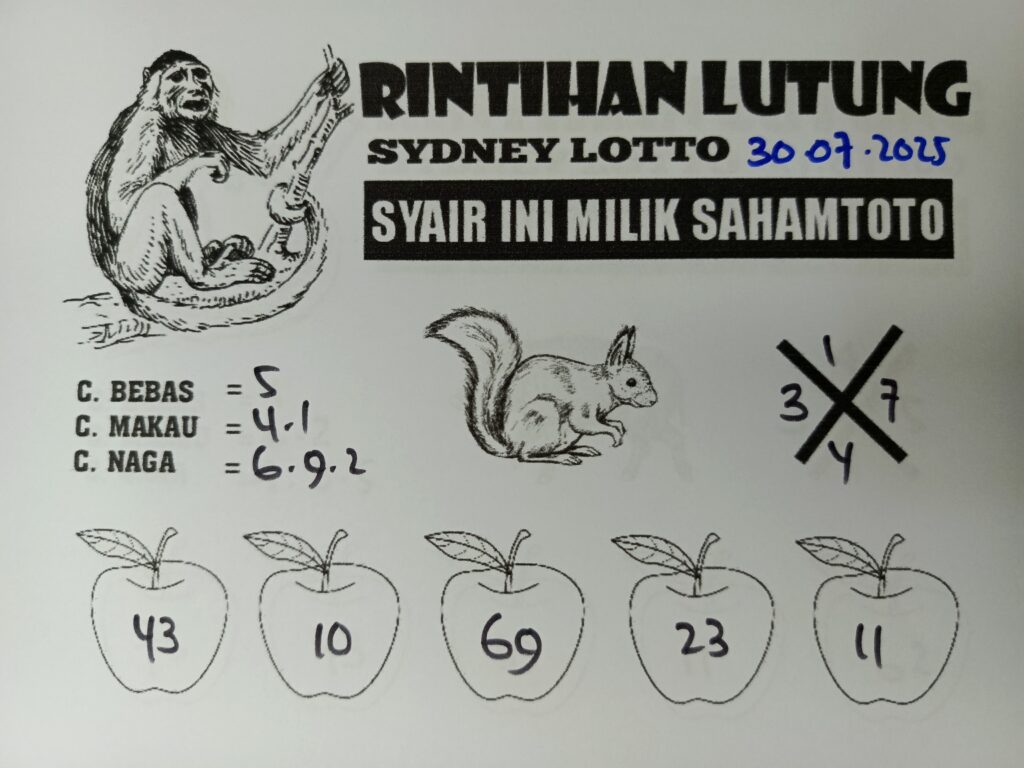 Syair Rintihan Lutung SYDNEY LOTTO Hari ini rabu , 30 Juli 2025