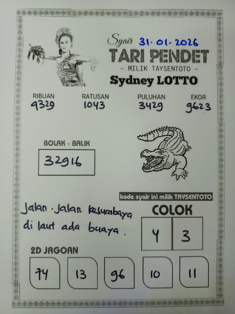 Syair Tari Pendet Sydney Hari ini Sabtu, 31 Januari 2026