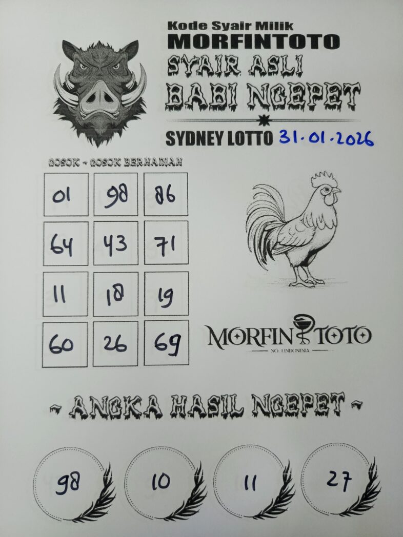 Syair lipan sakti SYDNEY LOTTO Hari ini Sabtu, 31 Januari 2026