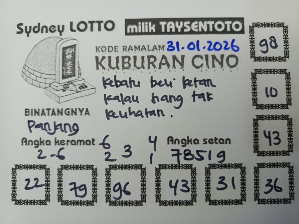 Syair Kuburan Cino Sydney Hari ini Sabtu, 31 Januari 2026