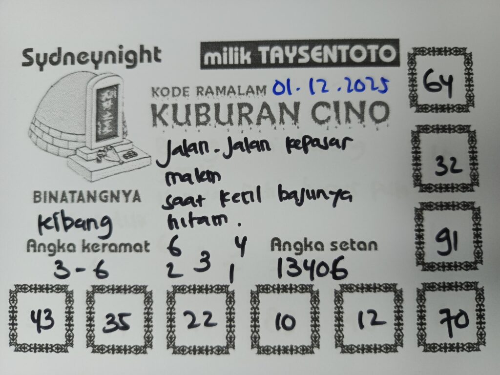 Syair Kuburan Cino SydneyNight Hari ini Senin, 01 Desember 2025