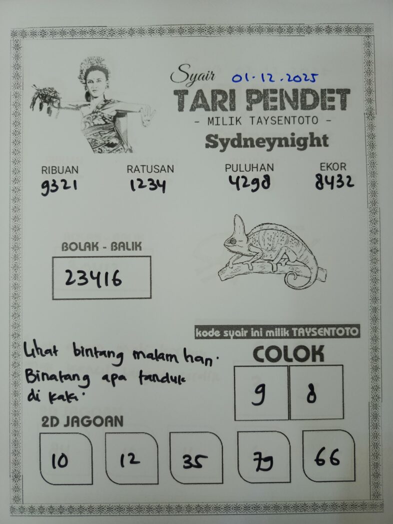 Syair Tari Pendet SydneyNight Hari ini Senin, 01 Desember 2025