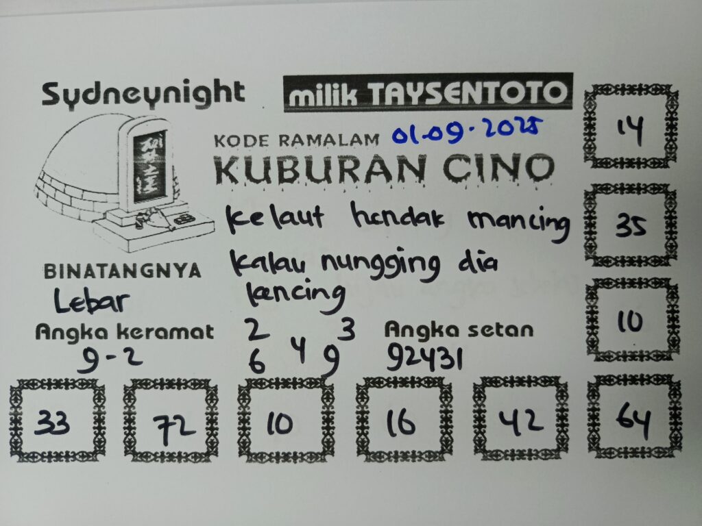 Syair Kuburan Cino SydneyNight Hari ini Senin, 01 September 2025