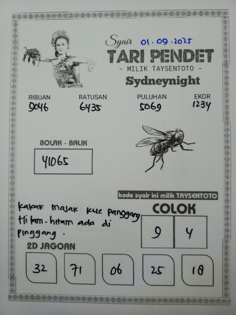Syair Tari Pendet SydneyNight Hari ini Senin, 01 September 2025