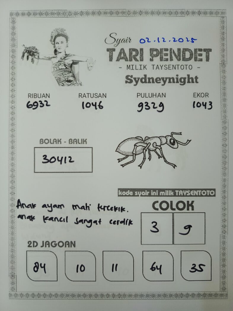 Syair Tari Pendet SydneyNight Hari ini Selasa, 02 Desember 2025