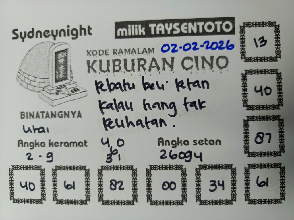 Syair Kuburan Cino SydneyNight Hari ini Senin, 02 Februari 2026