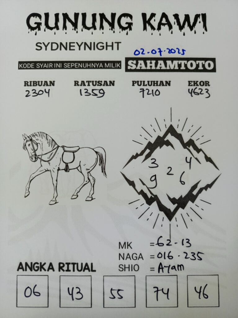 Syair Gunung Kawi Sydney Night Hari ini Rabu 01 Juli 2025