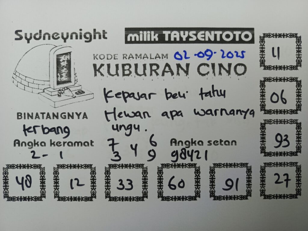 Syair Kuburan Cino SydneyNight Hari ini Selasa, 02 September 2025